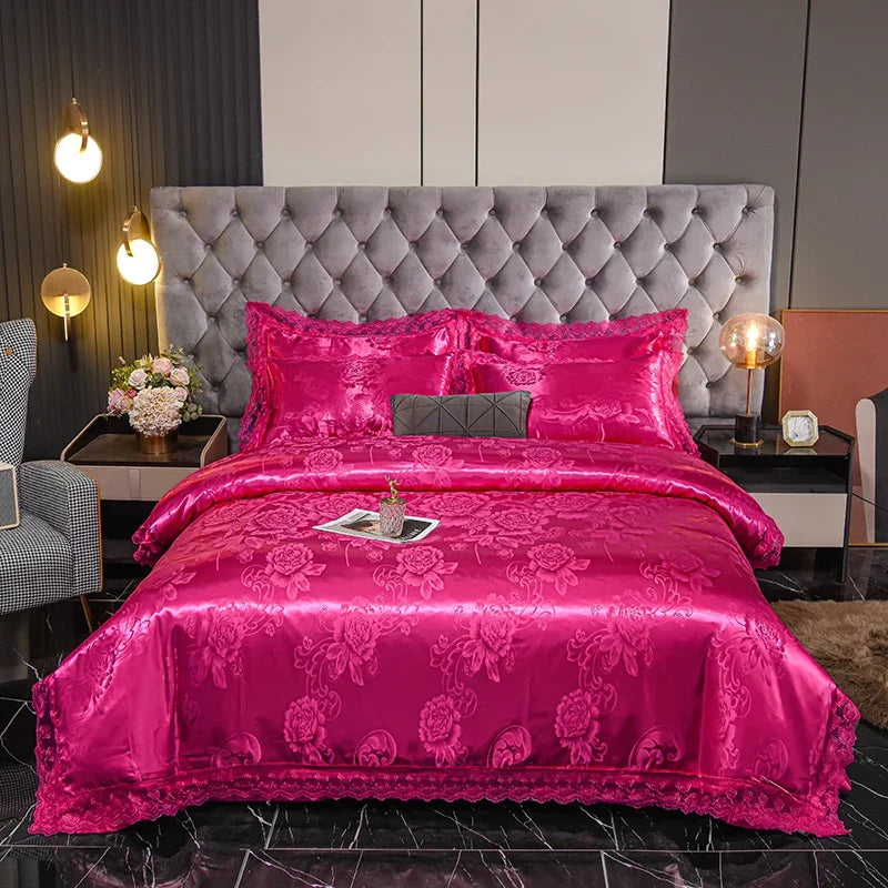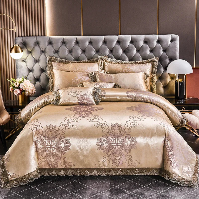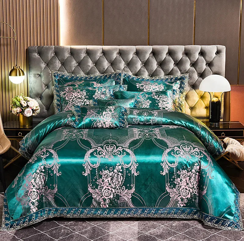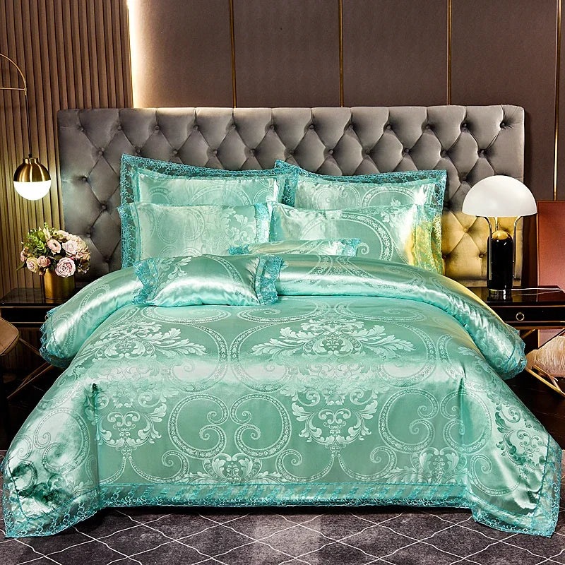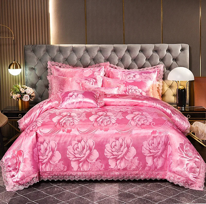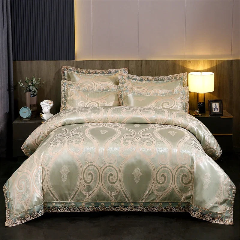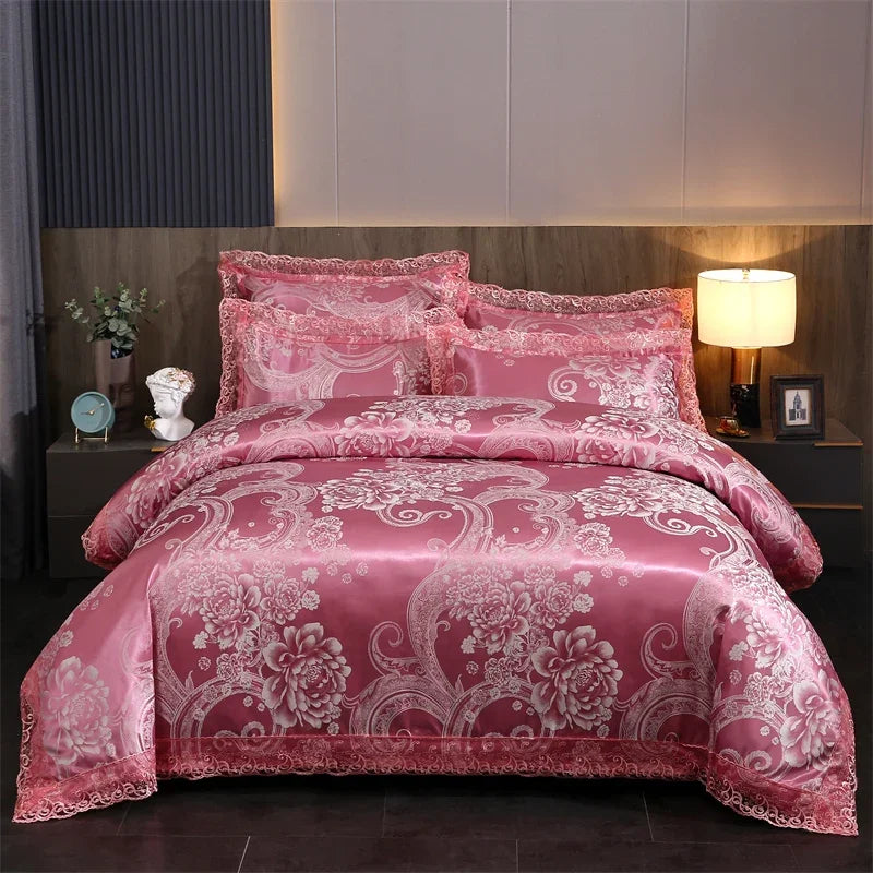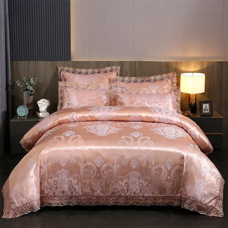 صُمم هذا الطقم خصيصًا لمن يُقدّرون الأناقة، فهو يضم كل ما تحتاجه لتجديد كامل لغرفة نومك. من قماش الساتان الجاكار الناعم إلى حواف الدانتيل الرقيقة، يوفر هذا الطقم فخامة ودفئًا ورقيًا لا مثيل له.