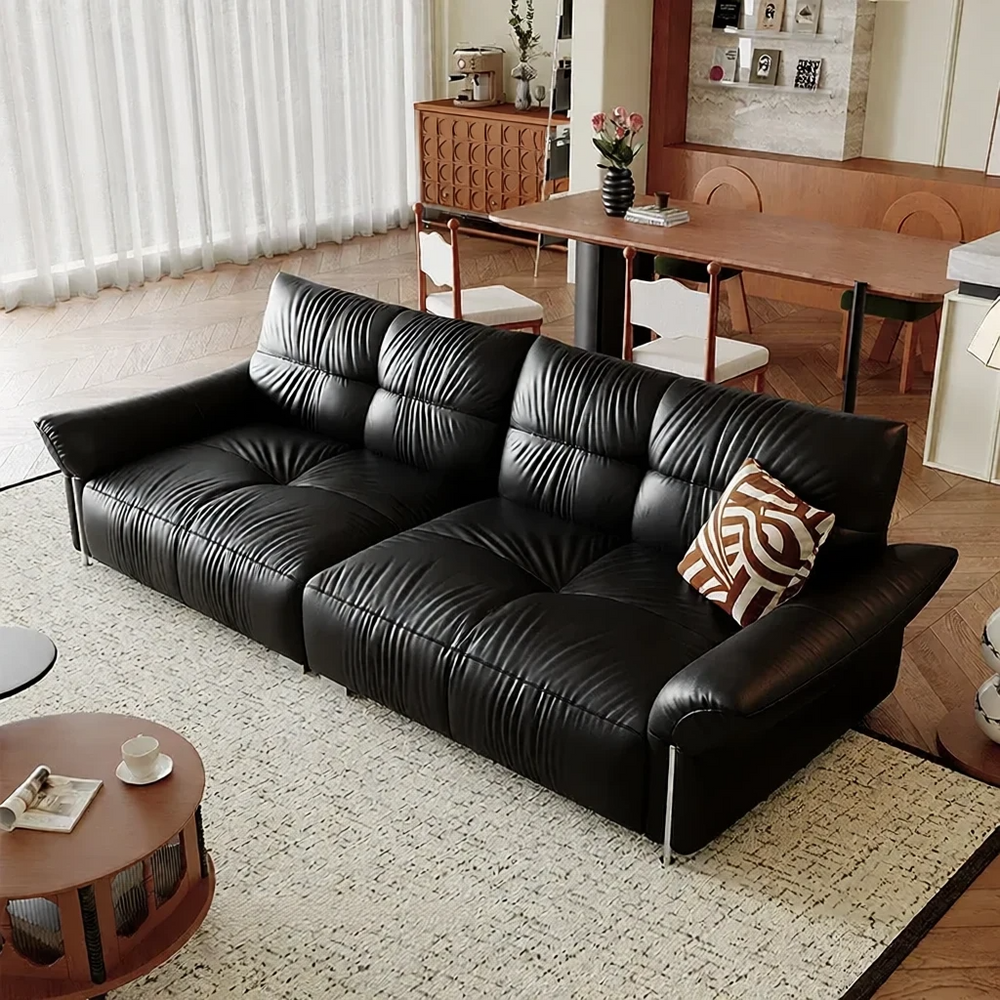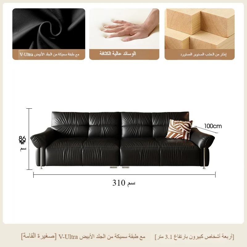تمتع براحة لا مثيل لها مع هذه الأريكة الفاخرة المصممة على الطراز الفرنسي العتيق، المصنوعة من الجلد البقري عالي الجودة. تقدم لك هذه الأريكة تجربة استثنائية من الفخامة والراحة، مع مسند ظهر مرتفع على شكل سحابة. الأريكة متوفرة بنسختين: النسخة ذات الأرجل العالية والنسخة ذات الأرجل المنخفضة، لتتناسب مع مختلف الأذواق والمساحات.
