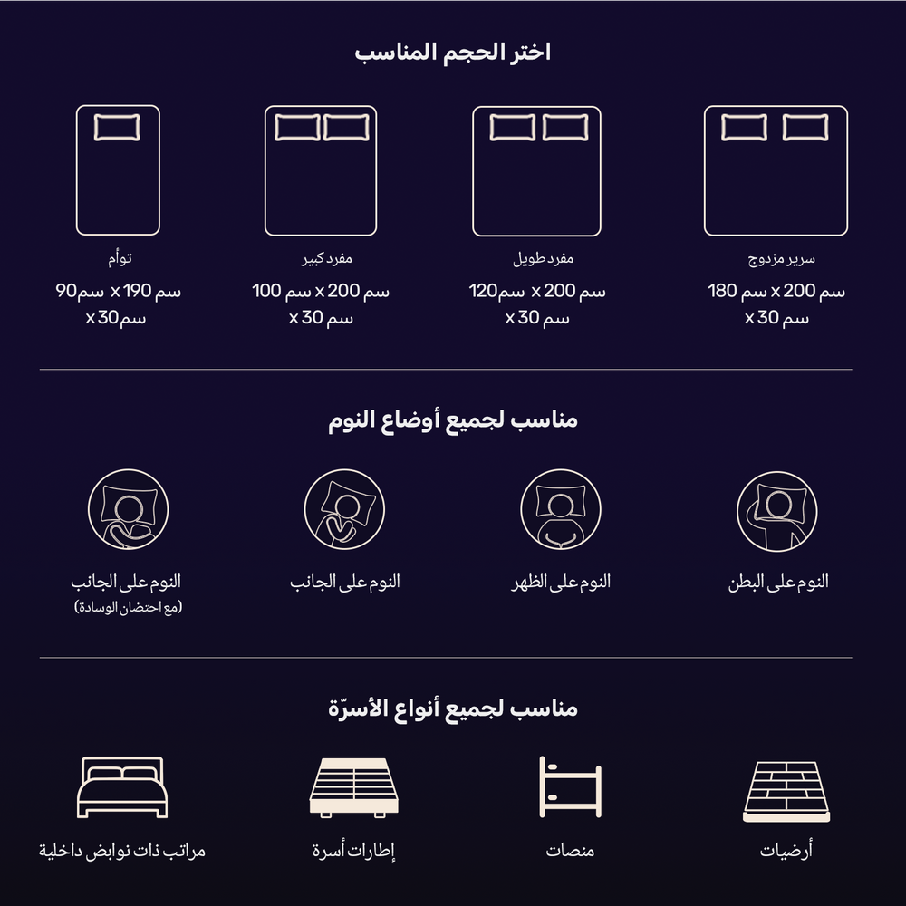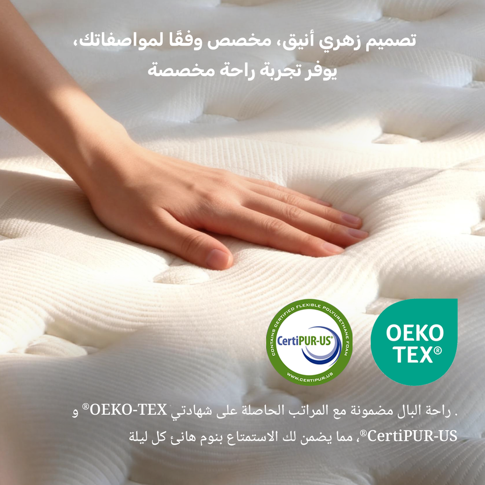 مراتبنا معتمدة من سيرتيبور-يو اس وويكو-تيكس من حيث المتانة والمحتوى والأداء. مرتبة ناعمة، جيدة التهوية، تمنحك نومًا أفضل طوال الليل.