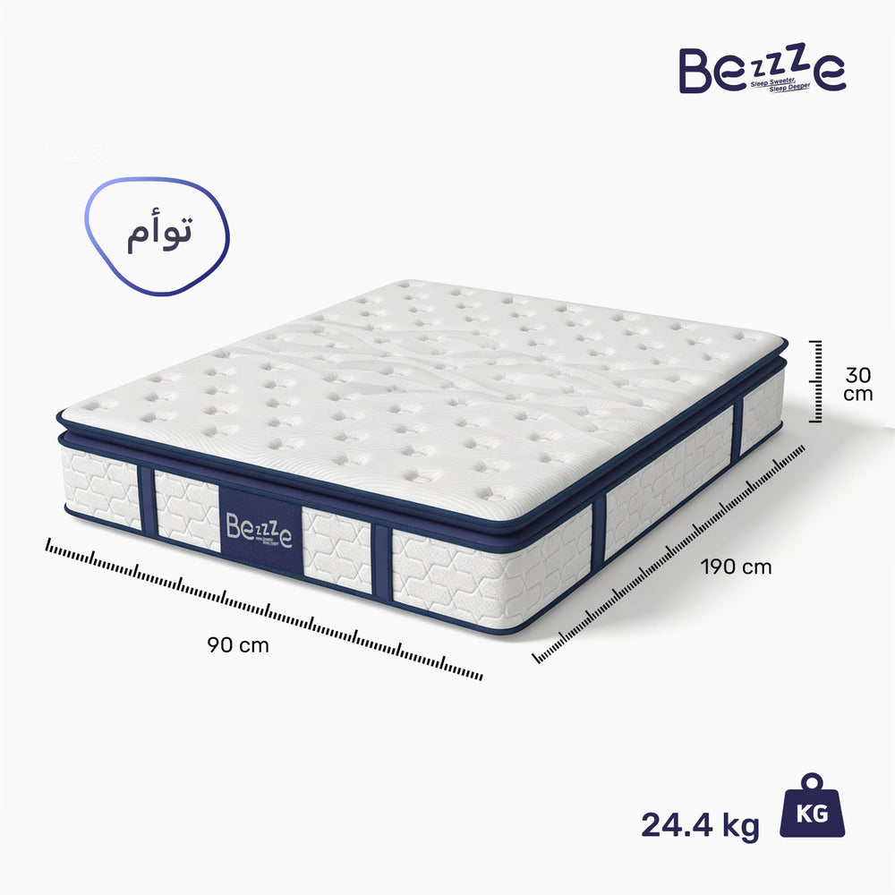 تعتمد مرتبة Bezzze ذات الحجم الكامل (30 سم) على تصميم الزنبرك المستقل، والذي يعمل بشكل مثالي مع رغوة الذاكرة المريحة لتوفير دعم ممتاز، مما يضمن توزيع القوة بالتساوي على المرتبة بأكملها، مما يساعد الأشخاص الذين يعانون من مشاكل في الظهر أو الرقبة على الحصول على نوم مريح.